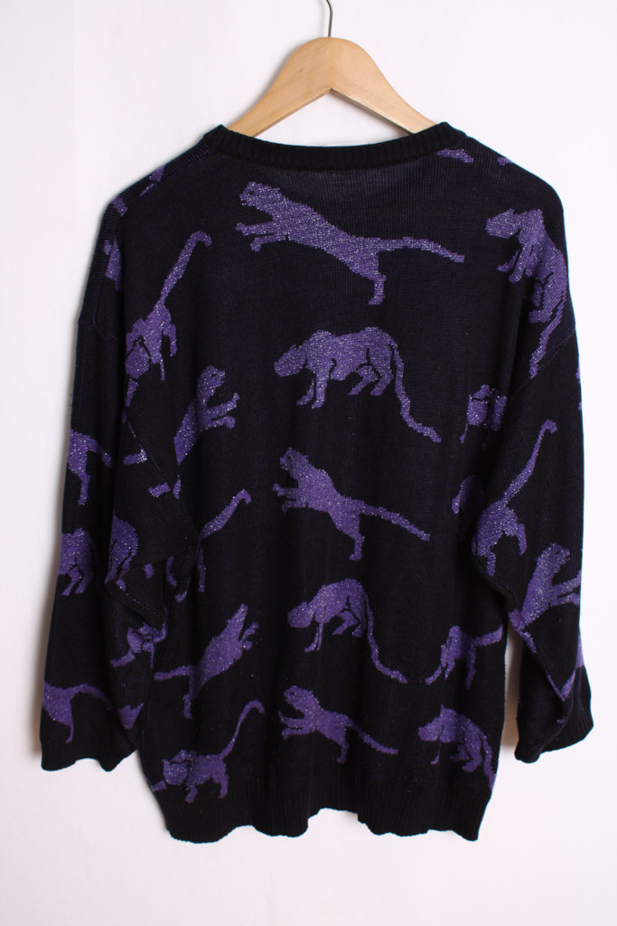 Jersey azul marino con estampado de leopardos en tono morado con brillos.