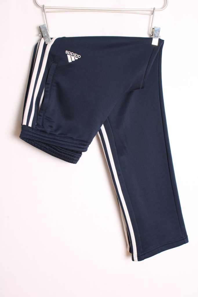 Pantalón deportivo vintage de la marca Adidas en color azul marino con franjas blancas.