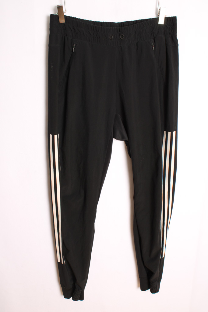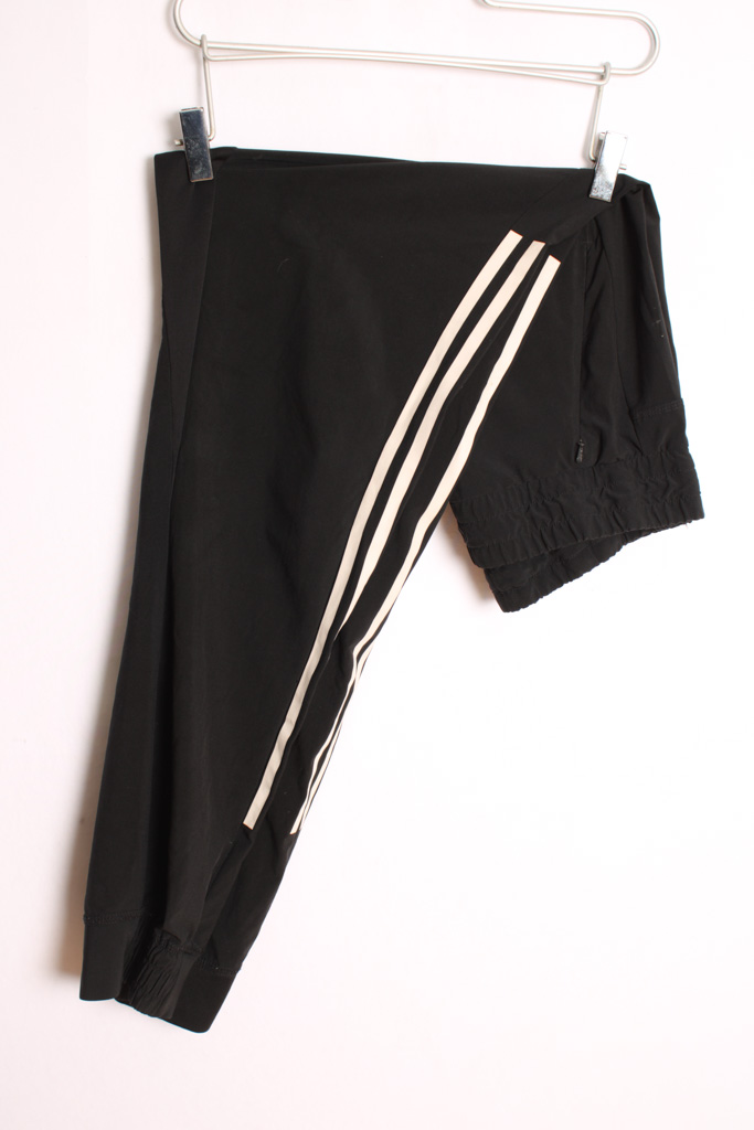 Pantalón deportivo vintage de la marca Adidas en color negro con franjas blancas.