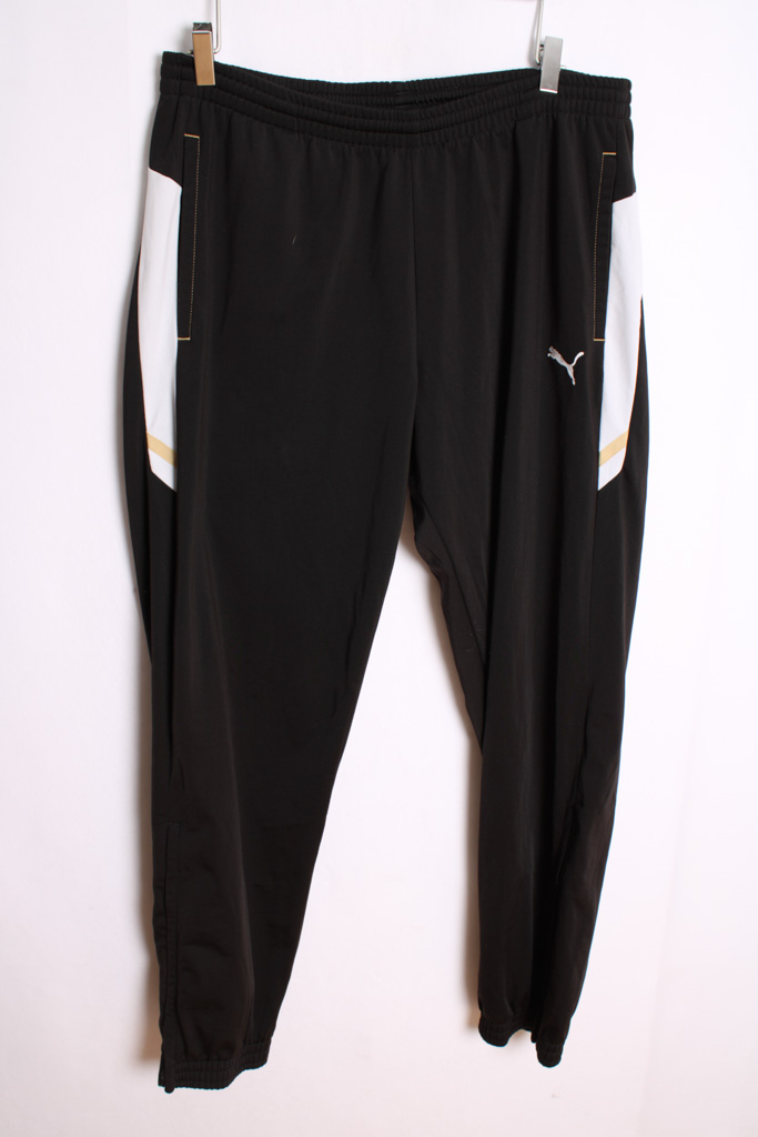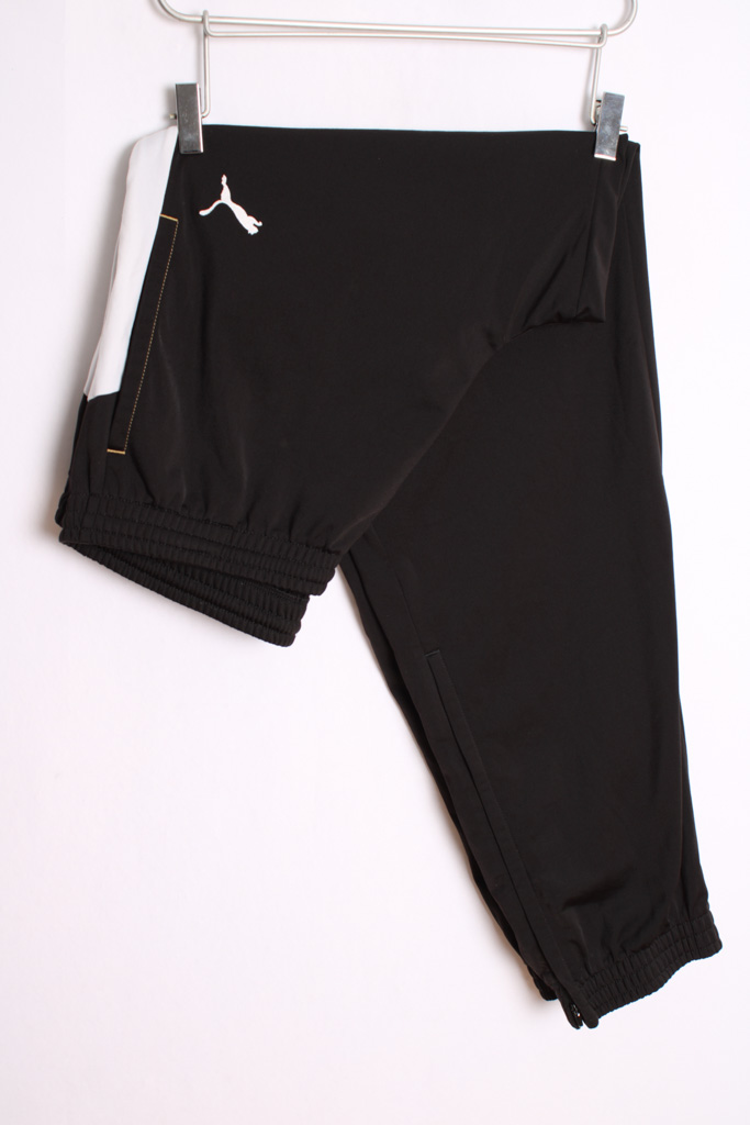 Pantalón deportivo vintage de la marca Puma en color negro con detalles blancos.