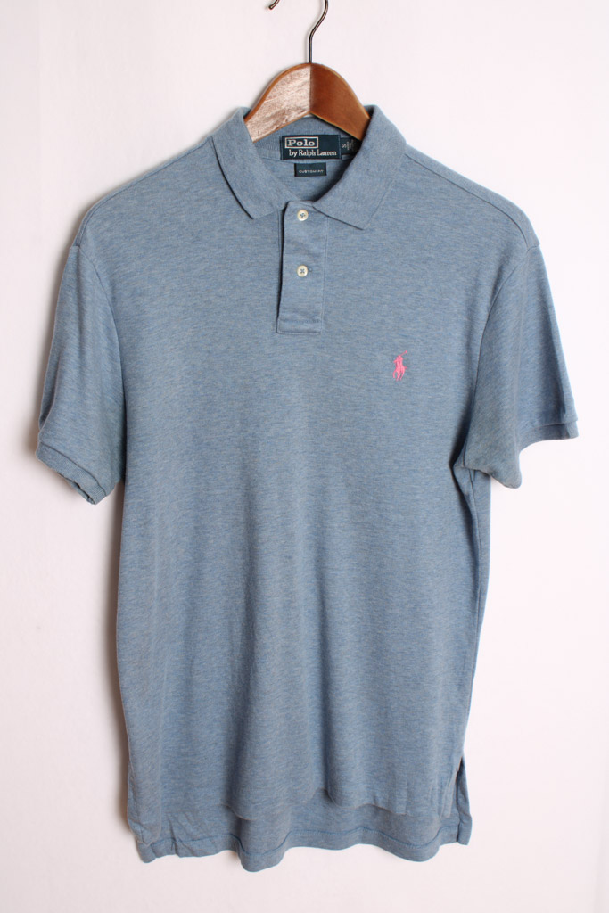 Polo vintage de la marca Ralph Lauren en color azul claro jaspeado.