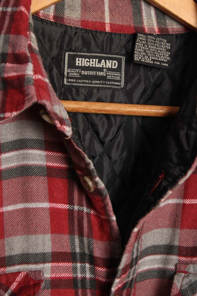 Sobrecamisa vintage para hombre de franela en cuadros de  colores rojo y gris con interior forrado guateado en color negro.