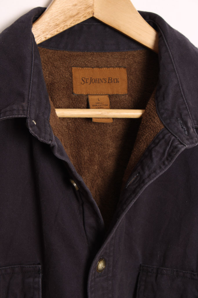 Sobrecamisa vintage de loneta en color azul marino con interior de borreguillo color marrón.