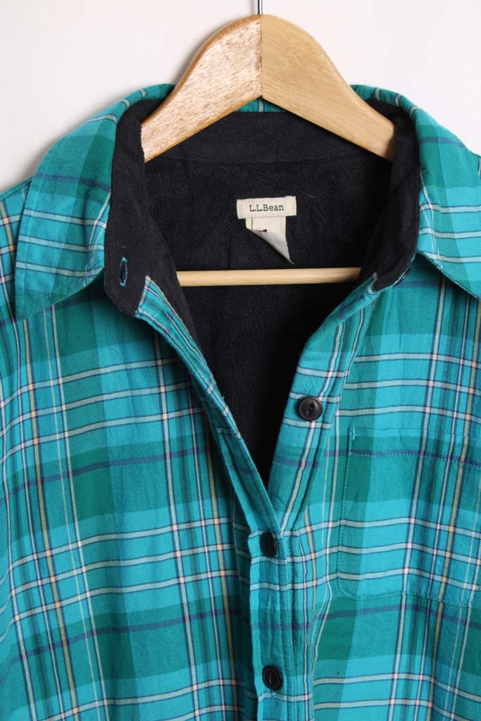 Sobrecamisa vintage para mujer de cuadros en tonos turquesa y forro interior de borreguillo.