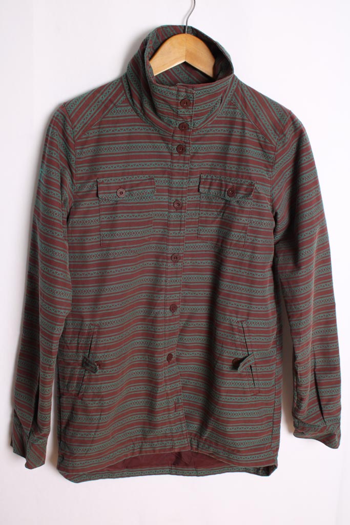 Sobrecamisa con estampado navajo en tonos cobre y verde con cuello alto para chica con interior forrado guateado.