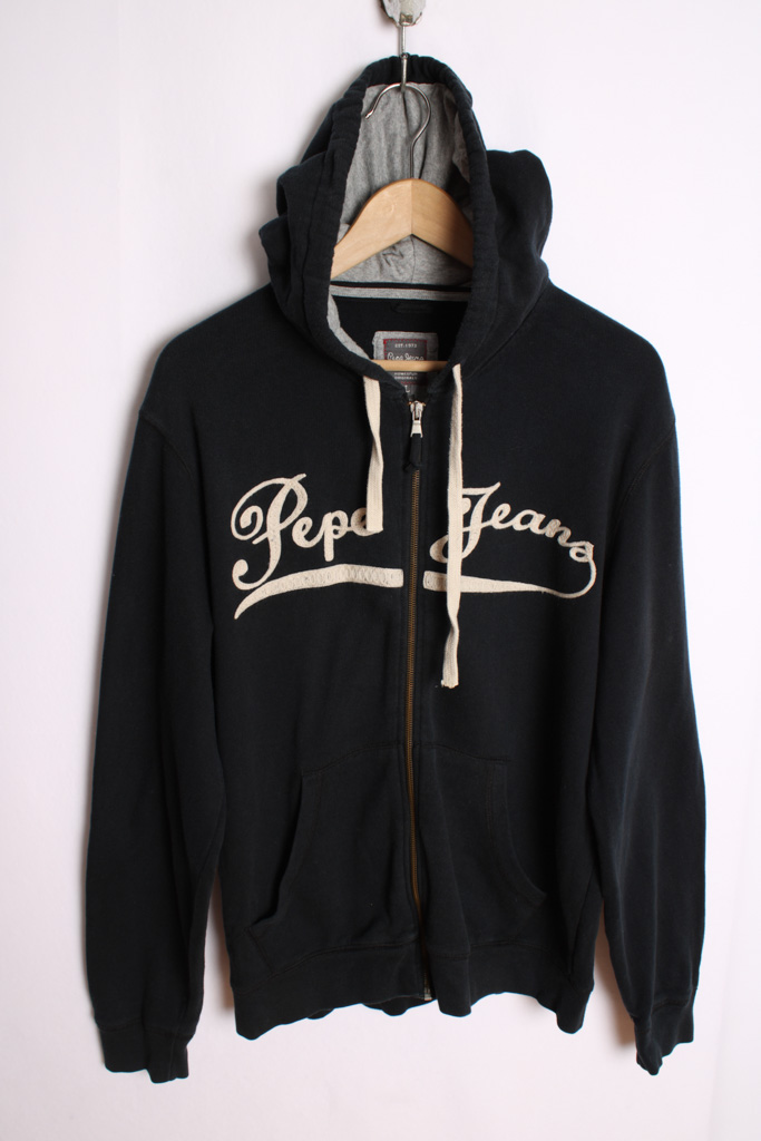 Sudadera unisex deportiva negra de Pepe Jeans con cierre de cremallera y capucha.