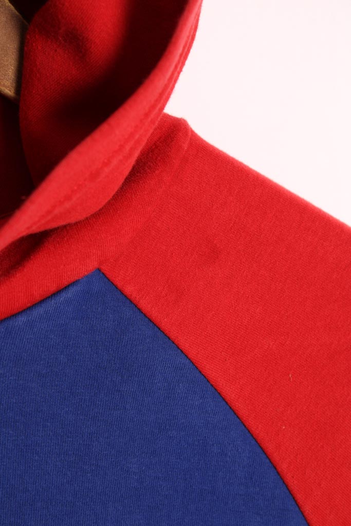Sudadera vintage de la marca Ralph Lauren en colores azul y rojo con capucha.