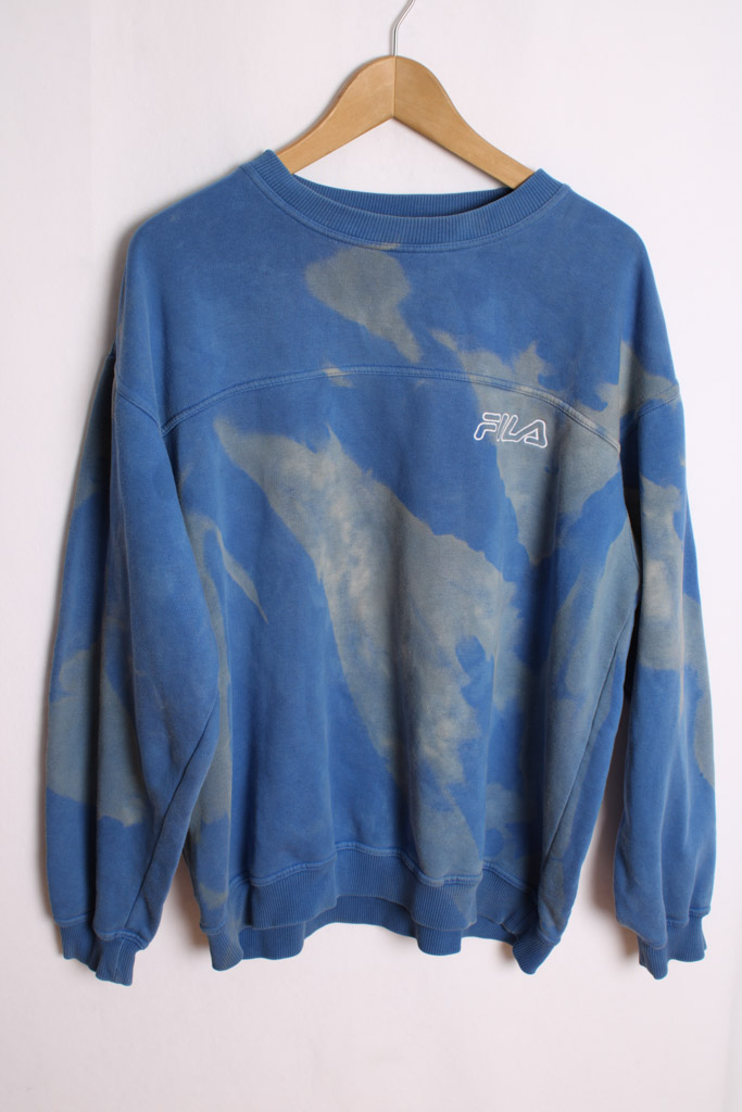 Sudadera vintage unisex de Fila en color azul con efecto tie dye.