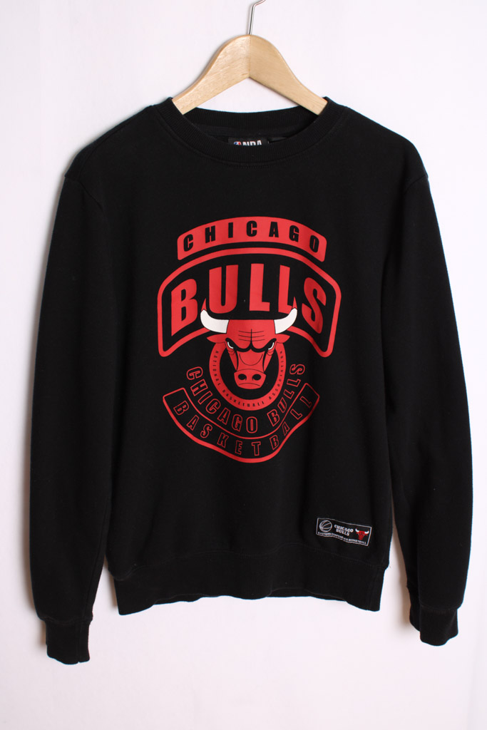 Sudadera vintage unisex de los Chicago Bulls en color negro con detalles en rojo.