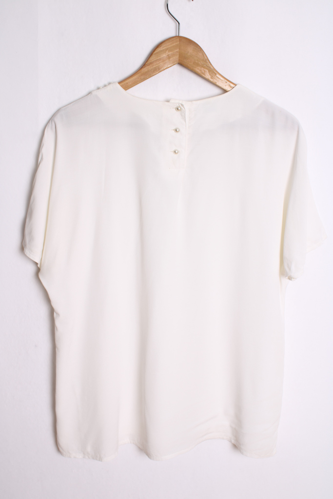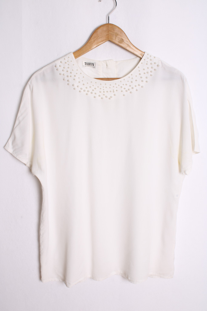 Blusa tipo top de primavera vintage en color blanco con detalles en el cuello de perlitas.*
