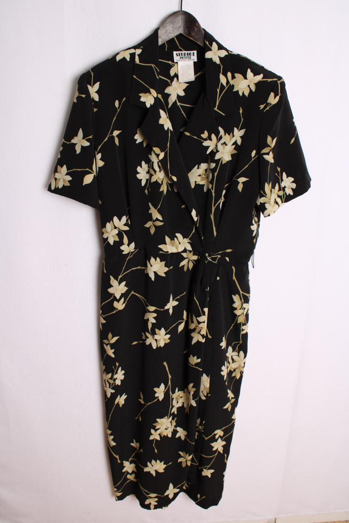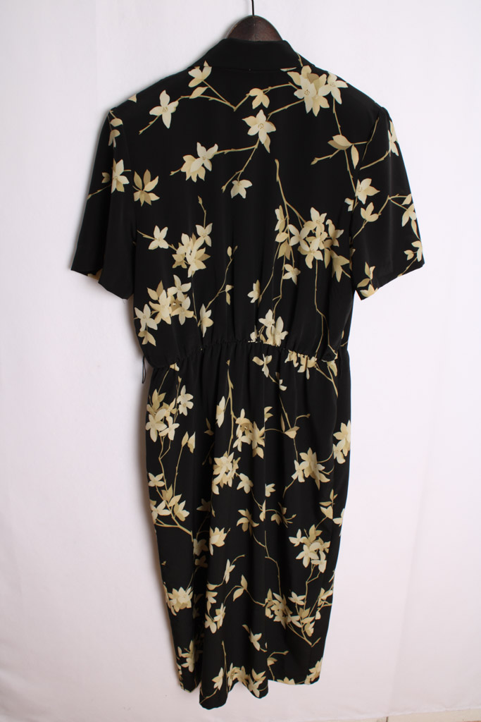 Vestido vintage de verano en color negro con estampado de flores color arena.