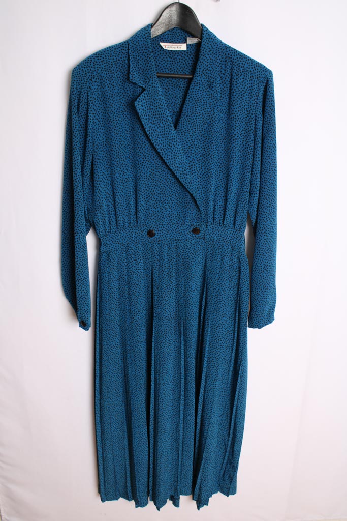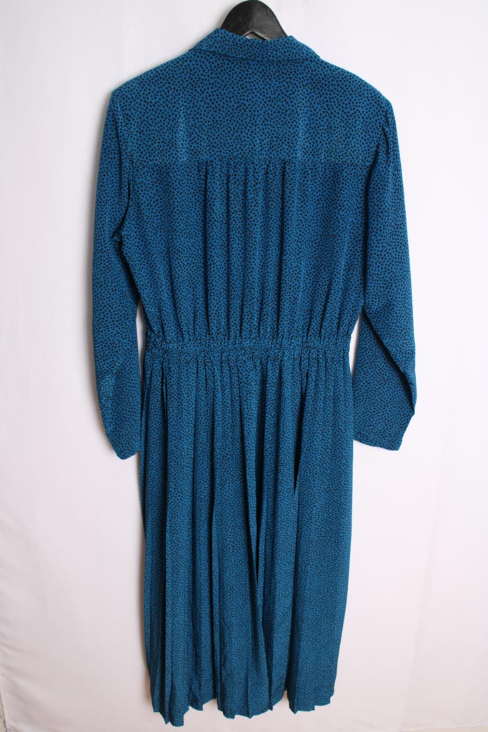 Vestido vintage de verano en color azul petróleo con estampado de triángulos pequeños.