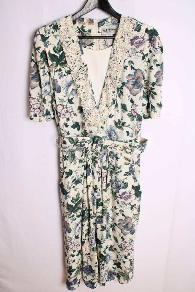 Vestido de Flores Vintage Verde y Beige «2XL»