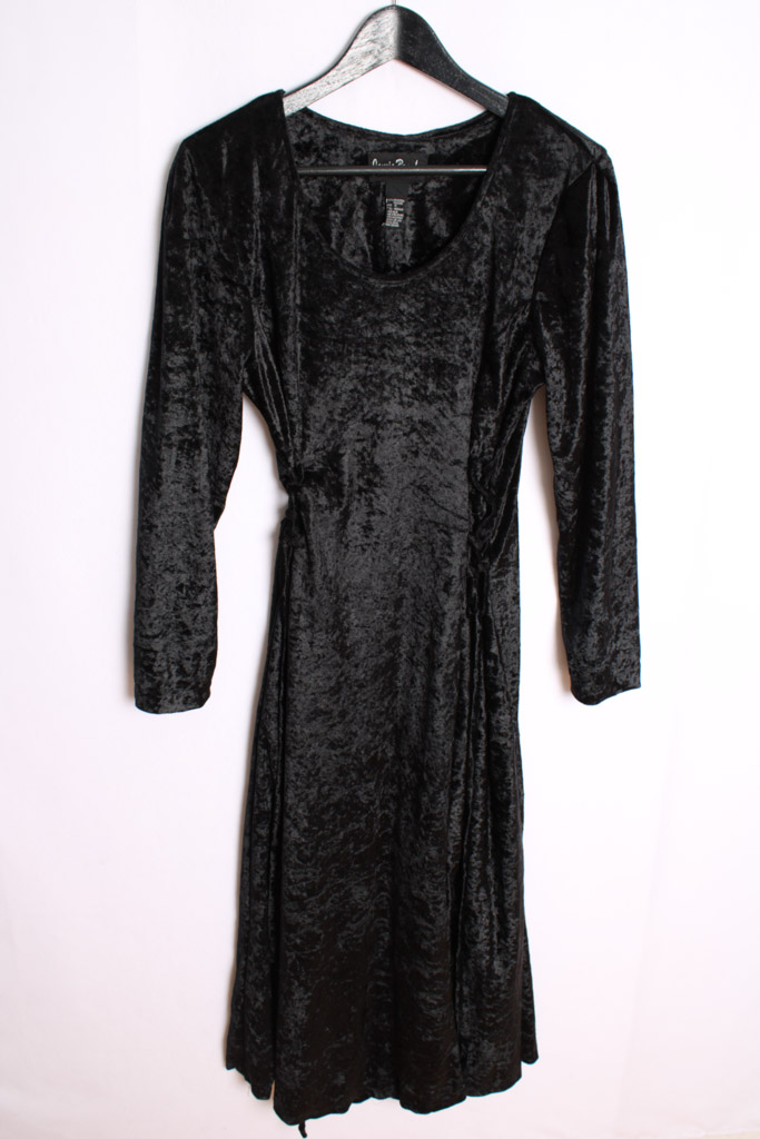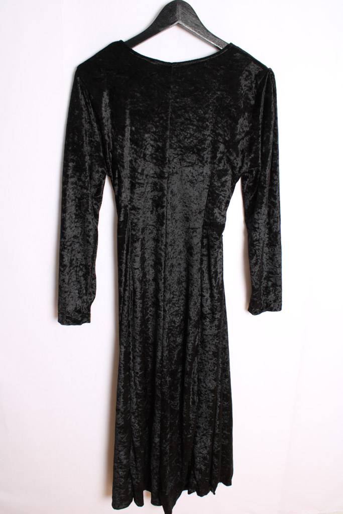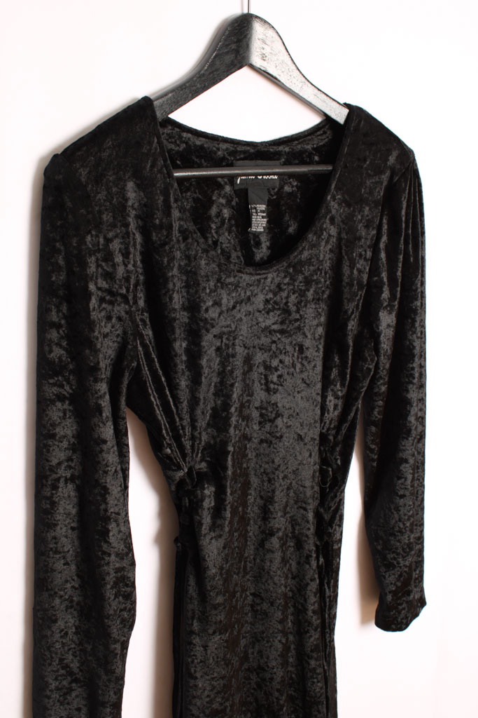 Vestido de terciopelo vintage en color negro de largo maxi con frunces laterales para ajustar.