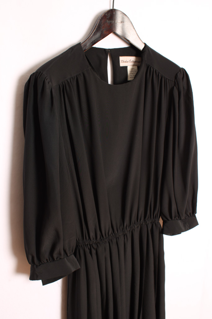 Vestido vintage de primavera con corte americano en color negro con plisados.