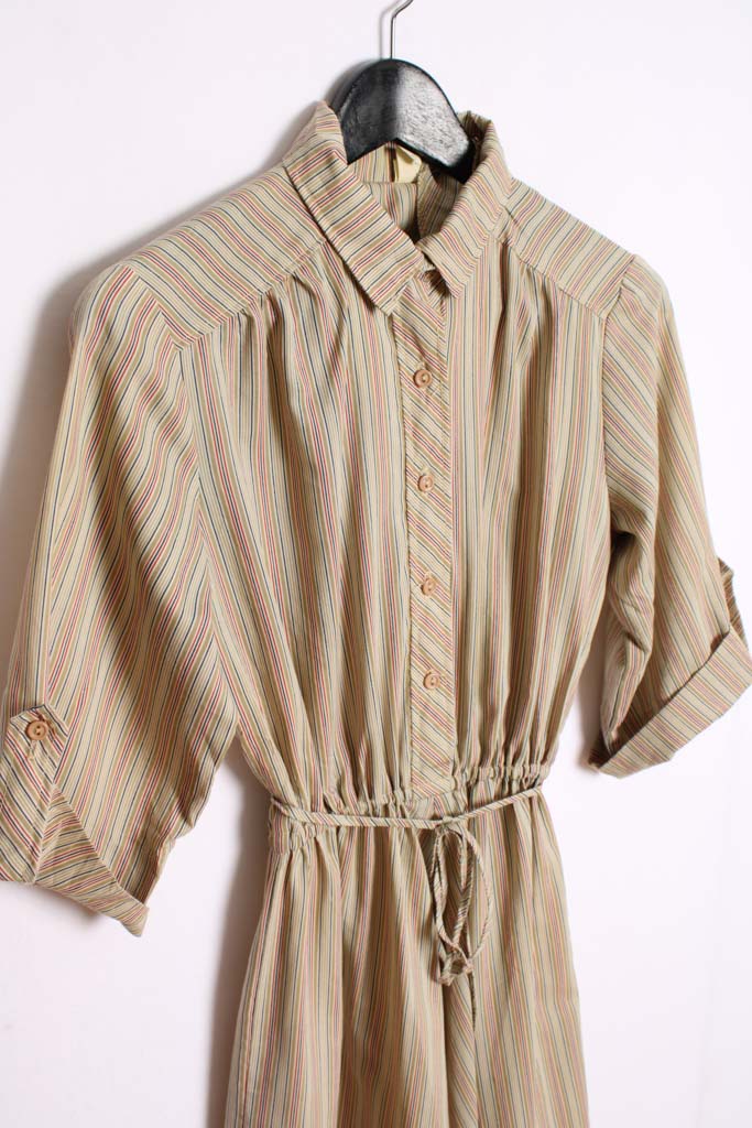 Vestido Vintage Estampado Rayas Manga Francesa «2XS/XS»