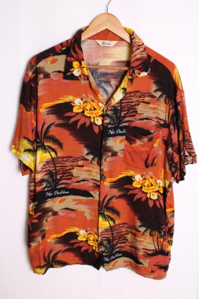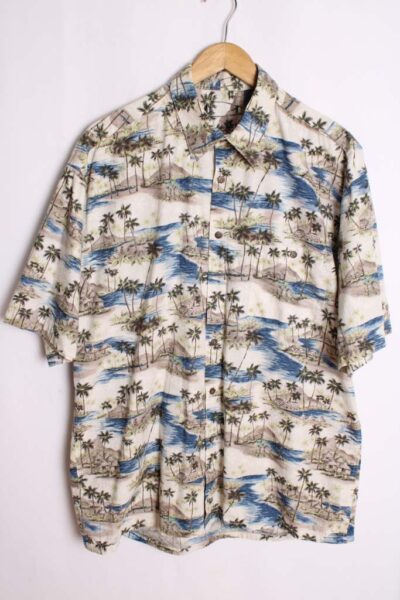 Camisa Vintage Hawaiana Cabañas y Palmeras «L»