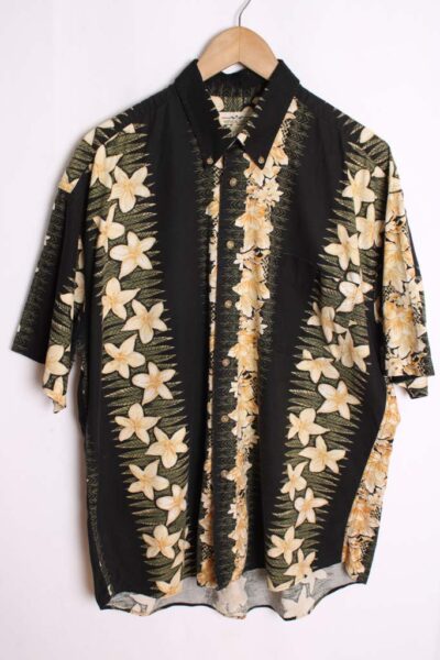 Camisa Negra Hawaiana Vintage Flores «L»