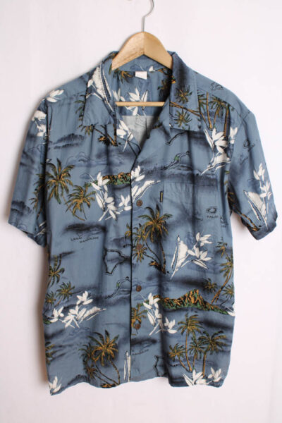 Camisa Vintage Hawaiana Gris Azulada «L»