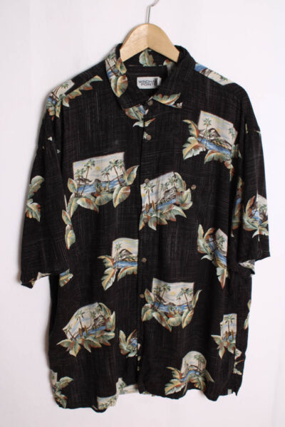 Camisa Negra Hawaiana Vintage Paisajes «XL/2XL»